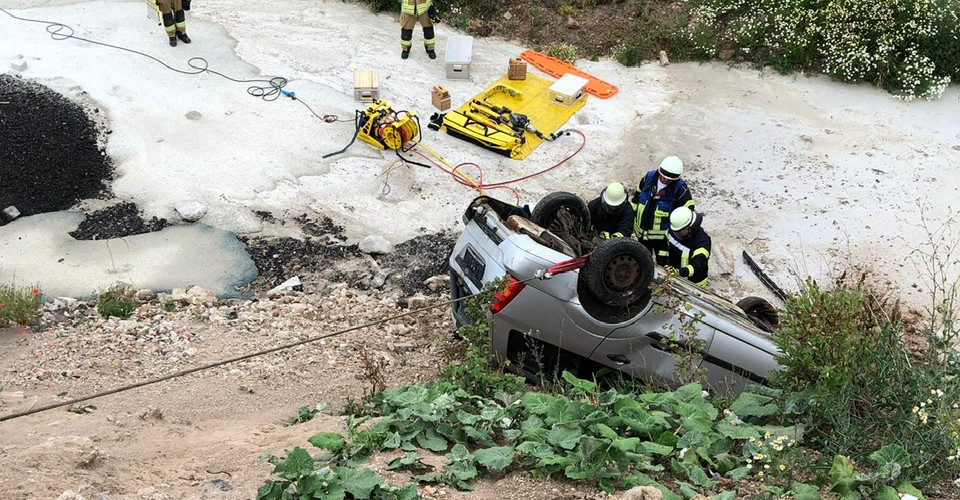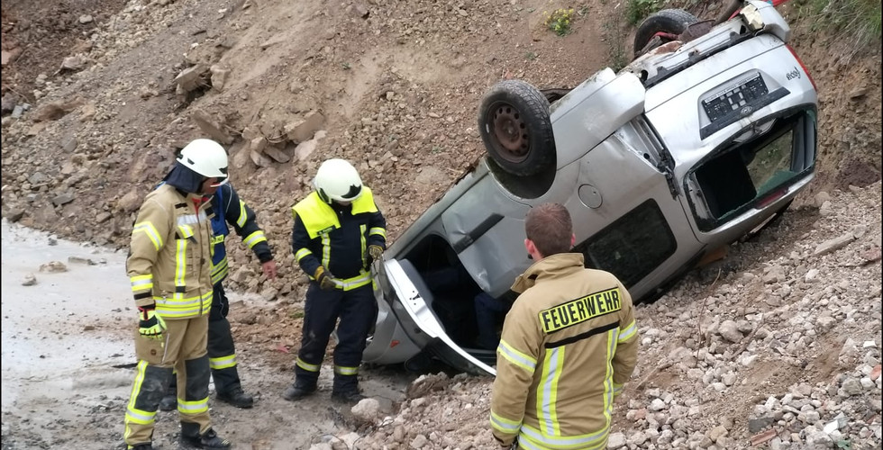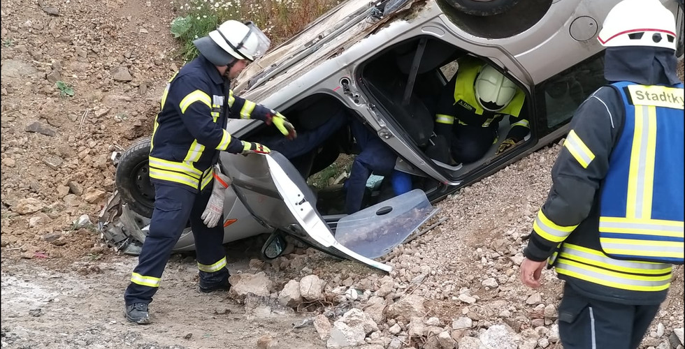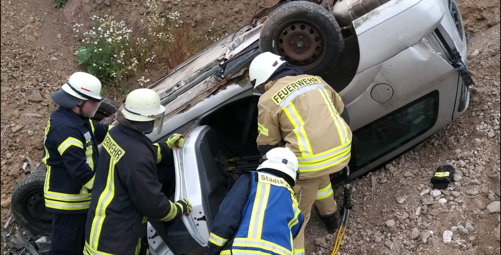 Die Übung im Juli 2019 hatte das Thema Technische Hilfe und Verkehrsunfall auf einer Baustelle. Durchgeführt haben wir diese Übung auf dem Gelände der Firma Backes Bau in Stadtkyll. Dort fanden wir einen abgestürzten PKW vor, der bei dem Versuch Bauschutt abzuladen, eine Böschung heruntergestürzt ist. Im Fahrzeug befanden sich noch 2 Erwachsene Personen. Die 1te Gruppe hat sich um dieses Übungsszenario gekümmert. Die 2te Gruppe baute unter Atemschutz einen Löschangriff auf zur Sicherstellung der Brandgefahren.